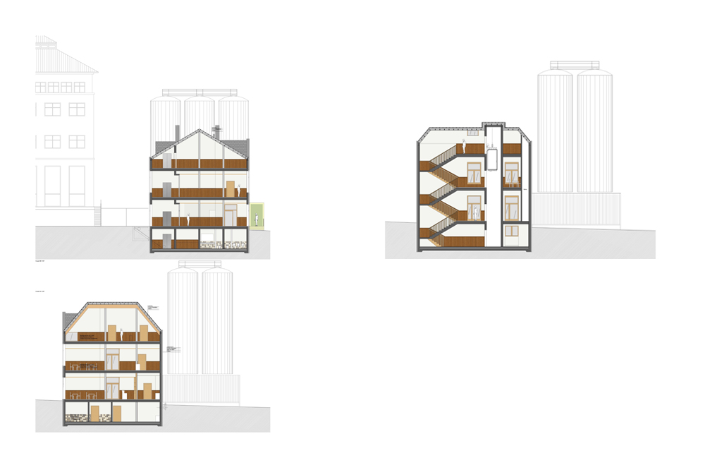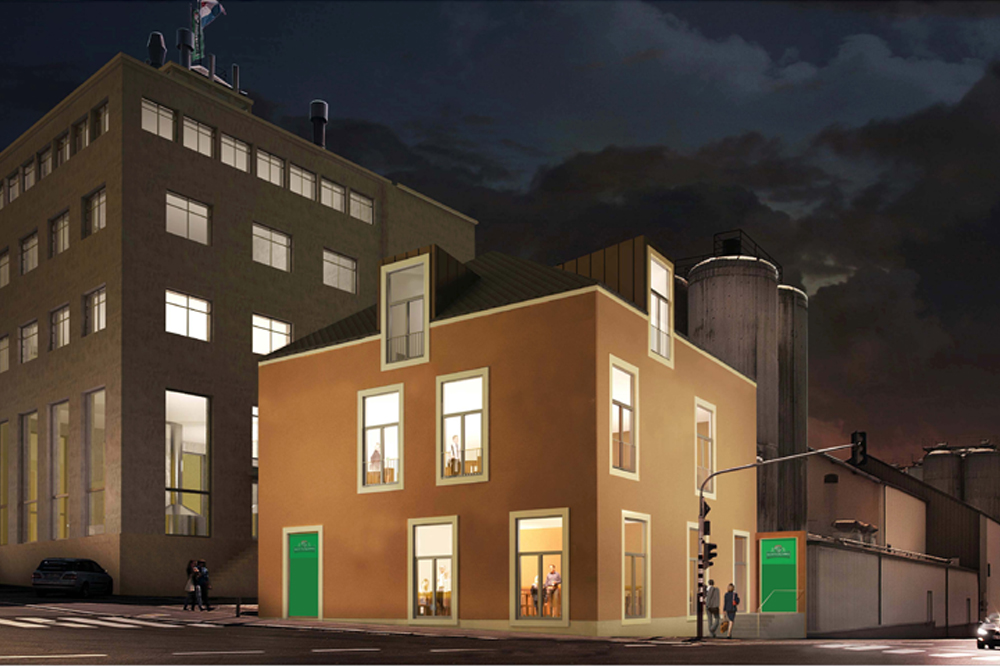 Le site de Bofferding à Bascharage puise ses racines dans une histoire plusieurs fois centenaire. Depuis le milieu du XIXe siècle, la brasserie est installée au cœur de la commune et le développement incessant des activités brassicoles fait désormais partie du paysage. Au carrefour de deux voieries nationales, le site Bofferding est une adresse bien connue du public luxembourgeois et a accueilli depuis 2001 plusieurs dizaines de milliers de visiteurs. Au sein même de ce véritable « village industriel », un parcours didactique a été conçu pour permettre d’exposer concrètement l’ensemble des composantes à la fois traditionnelles et technologiques qui contribuent à la fabrication d’une bière de très haute qualité. Chez Bofferding, le développement durable n’est pas un slogan, mais un des moteurs des innovations récentes les plus remarquables, ainsi que le démontre la visite. Une dizaine d’années après son lancement, le programme didactique est un succès et le moment est peut-être venu d’inscrire cette initiative dans la durée et de lui donner un nouveau visage. La création d’un espace d’accueil, de réception et de formation autonome, accessible depuis l’espace public, plus visible et porteur de l’image de marque du groupe, est à l’ordre du jour. Pour accompagner les responsables de la brasserie dans cette importante réflexion stratégique, les architectes de Polaris Architects ont été invités à présenter une étude préliminaire portant sur la maison, ancien siège du conseil d’administration, située à l’angle de l’avenue du Luxembourg et du boulevard Kennedy. Le bâtiment a beau être de dimensions relativement modestes, son importance symbolique et sa position clé le transforment en une sorte de diapason, capable de donner le ton de l’image du site dans son ensemble. C’est dans cette optique que Polaris Architects a rassemblé les données d’une discussion qui tente de relier les multiples dimensions du projet : urbanistiques, commerciales, didactiques, techniques, écologiques et artistiques.