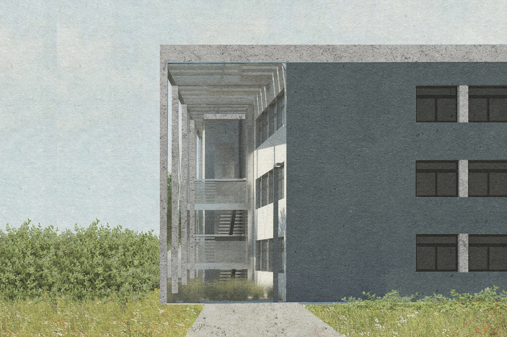 L’implantation de cet immeuble tertiaire passif est le résultat d’une étude préalable, visant à comparer les scénarios de développement possibles sur la parcelle envisagée pour la construction. Cette étude a permis de conclure à l’opportunité de réaliser successivement deux immeubles distincts, d’envergure comparable et de proportions légèrement différentes. Cette approche permet en outre d’optimiser l’exploitation d’une parcelle aux formes relativement irrégulières en esquissant des immeubles dont les dimensions soient à la fois appropriées au voisinage et favorables en vue de leur commercialisation.