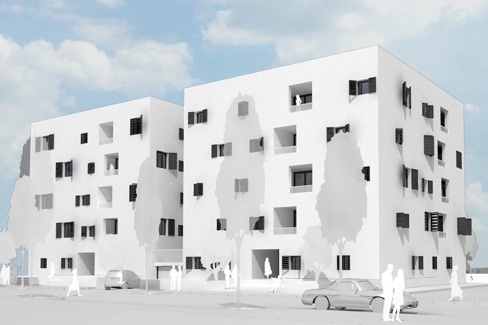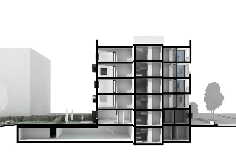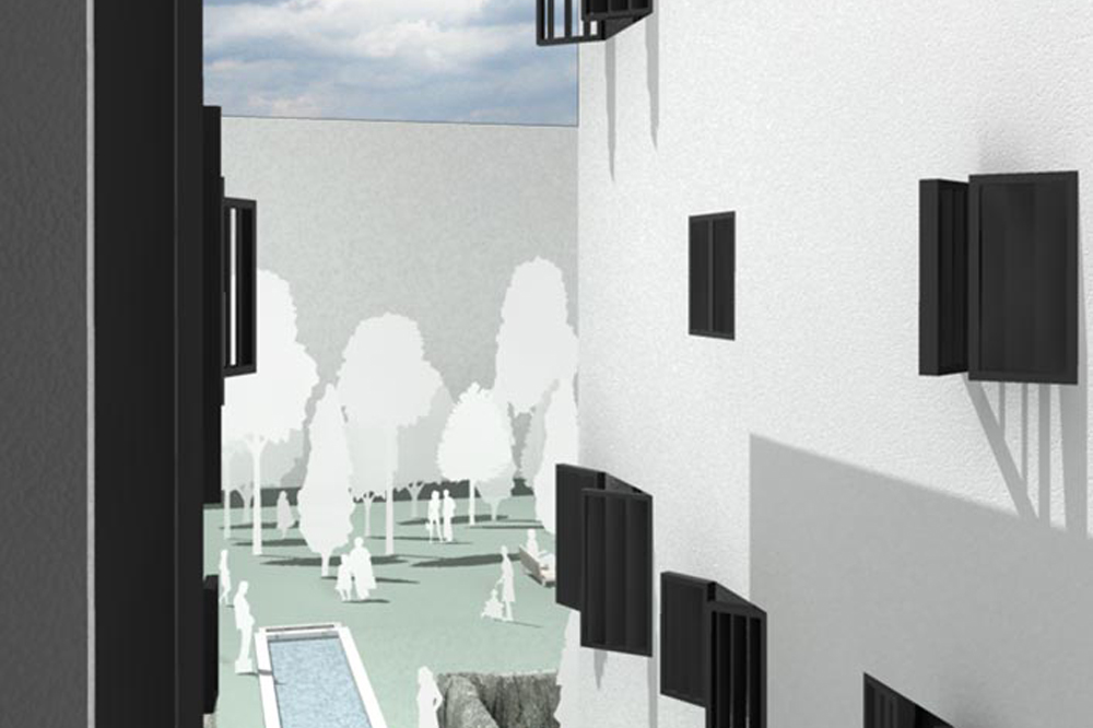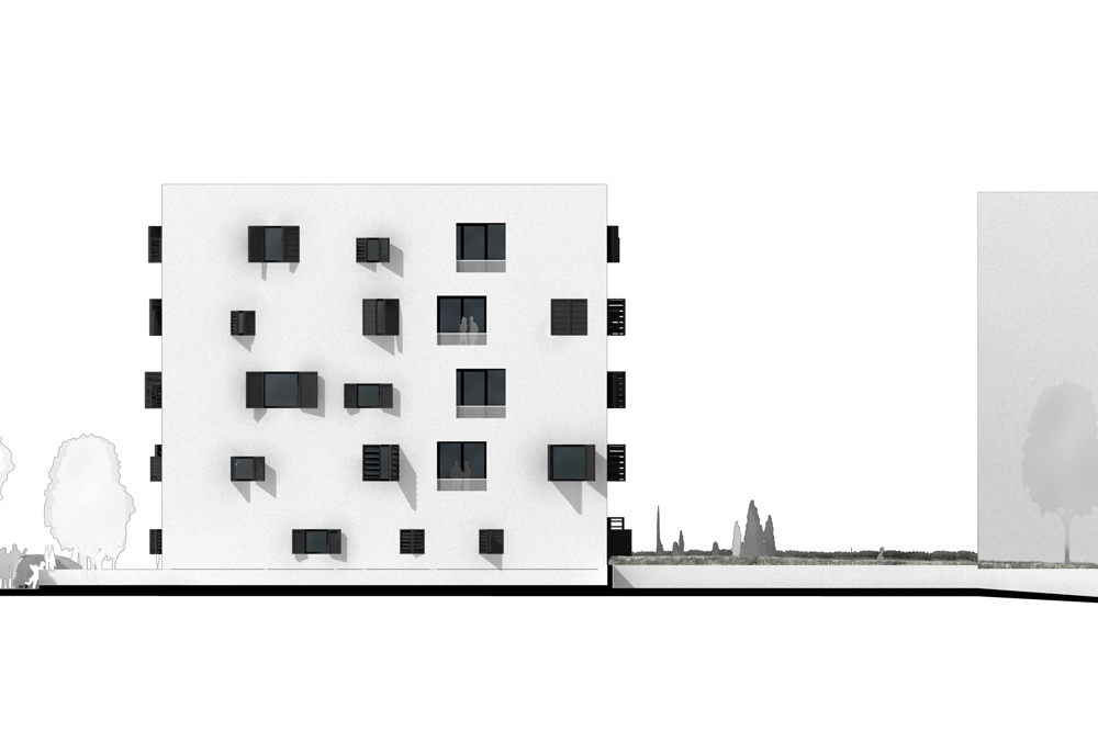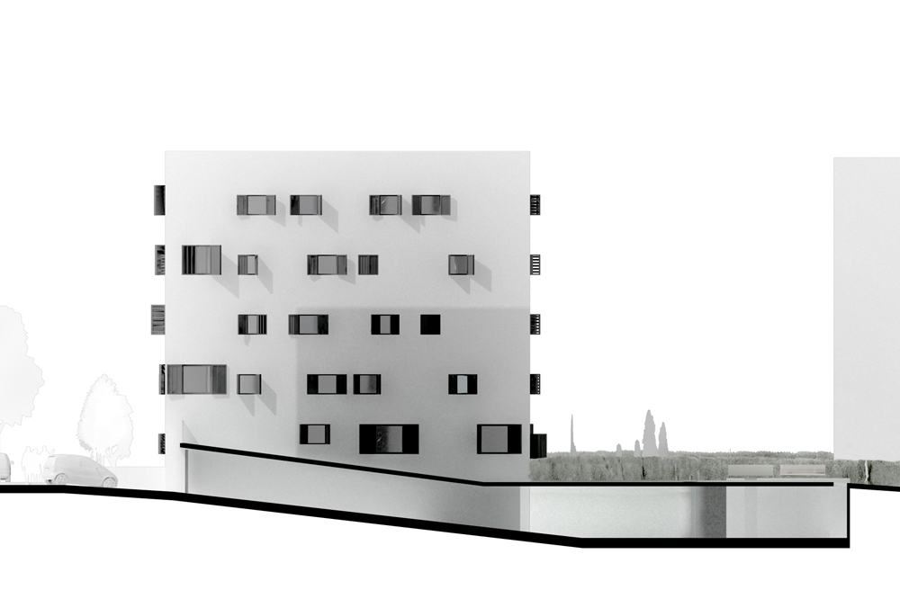 Un projet de concours combinant création architecturale et réflexion technique sur la performance énergétique et constructive d’un immeuble de logement social. A la demande du Fonds du Logement, agissant en tant que promoteur public dans le cadre d’un concours sur le plateau de Kirchberg à Luxembourg, nous avons implanté un programme de logement social dans une volumétrie théorique prévue au départ pour des appartements de grand standing. Le projet est à la fois très économique et très performant sur le plan énergétique.