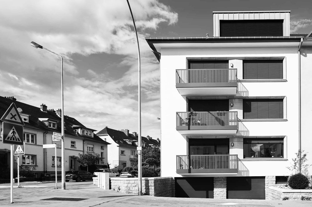 Le projet consiste en la rénovation d’un immeuble résidentiel situé dans l’angle entre l’avenue Gaston Diderich et le Boulevard Verdun à Luxembourg-Belair. Le volume original et la façade ont été maintenus afin de respecter les différentes contraintes réglementaires. La toiture a été entièrement rénovée et des nouvelles lucarnes ont été ajoutées afin d’éclairer et d’agrandir les logements aux derniers niveaux. Les nouvelles menuiseries extérieures apportent plus de lumière naturelle dans les pièces de vie améliorant la qualité des espaces intérieurs. Les espaces intérieurs ont été repensés afin de s’adapter aux demandes du maître d’ouvrage et proposer des logements de grande qualité. La résidence comprend 5 appartements de différentes tailles : 3 appartements avec 2 chambres, un studio ainsi qu’un duplex. Les sous-sols de la résidence comprennent les caves et les garages. Le très haut standing de ce projet est marqué par la qualité des matériaux, les finitions, l’aménagement de meubles intégrés sur mesure et la conception soignée des espaces intérieurs.